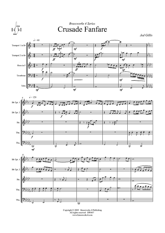 Digital Sheet Music for Crusade Fanfare - Score by Jed Gillis scored for Brass Quintet; id:411332