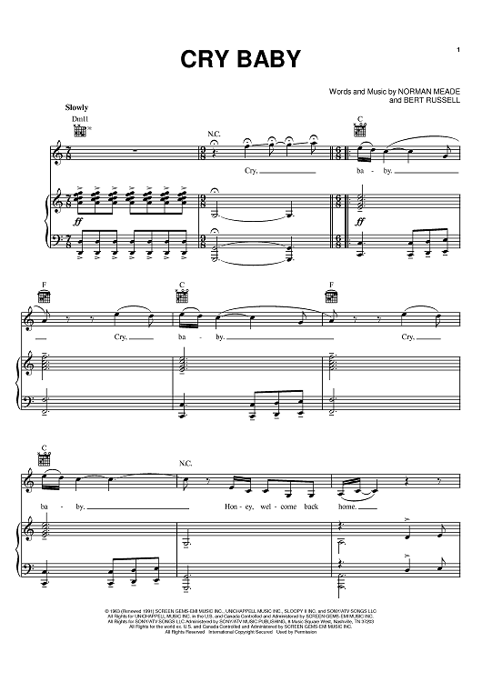 Digital Sheet Music for Cry Baby by Janis Joplin, Bert Russell, Norman Meade, Garnet & The Enchanters Mimms scored for Piano/Vocal/Chords; id:402433
