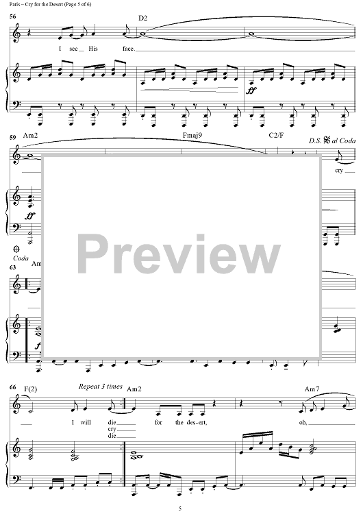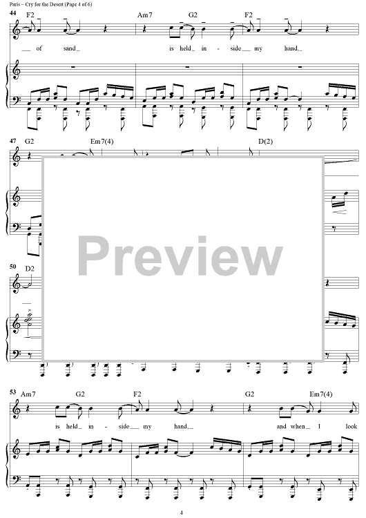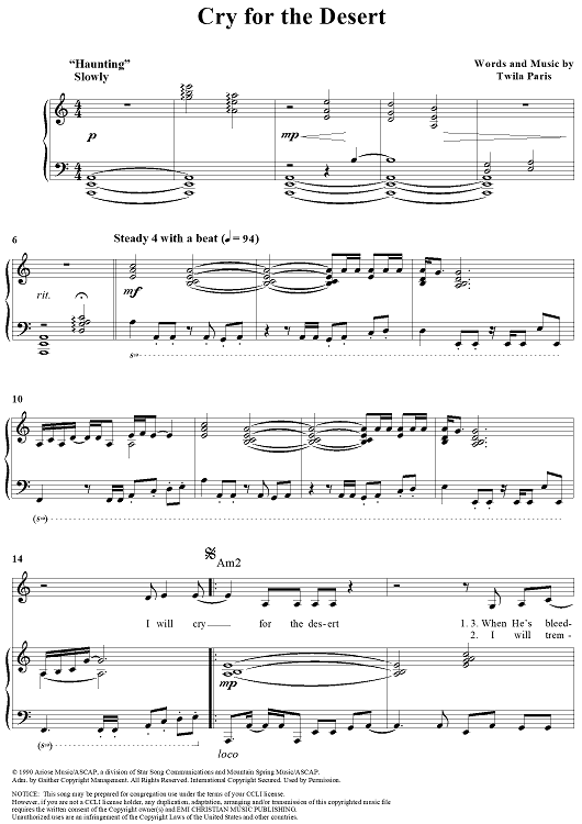 Digital Sheet Music for Cry for the Desert by Twila Paris scored for Piano/Vocal/Chords; id:119521