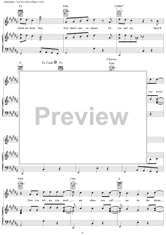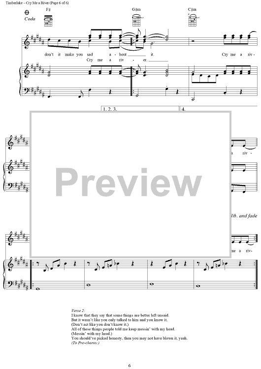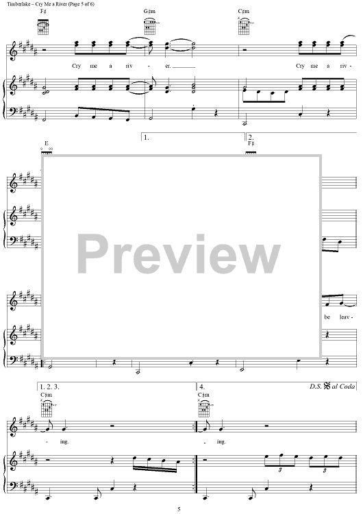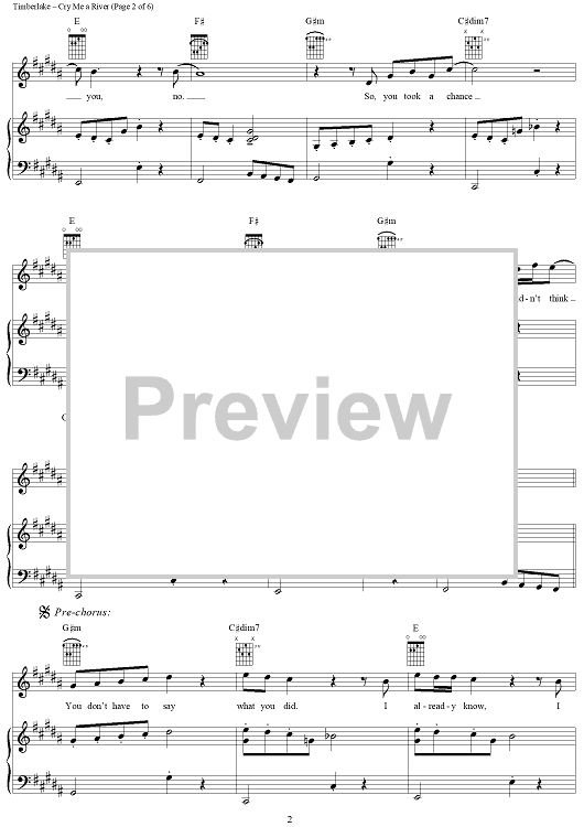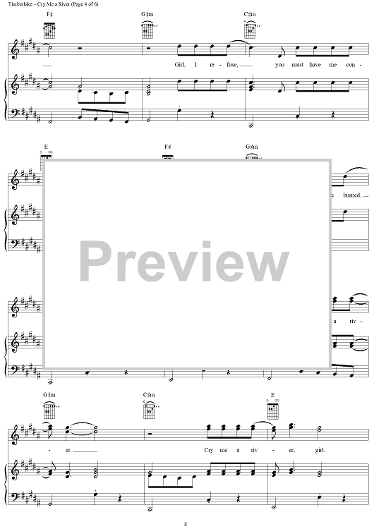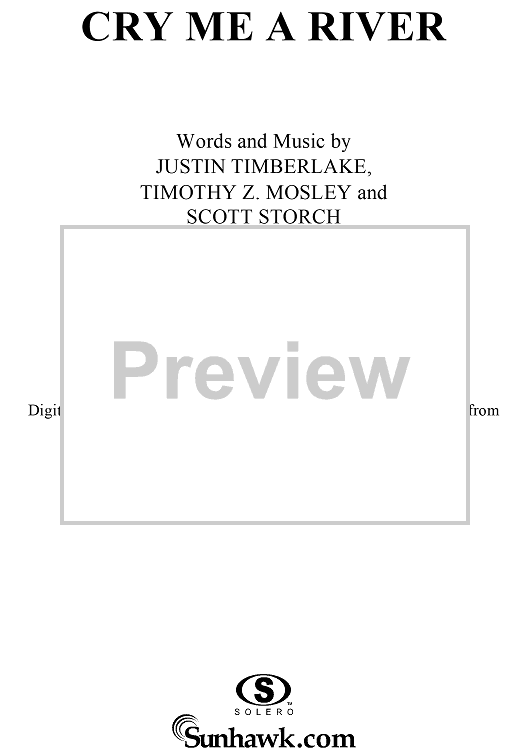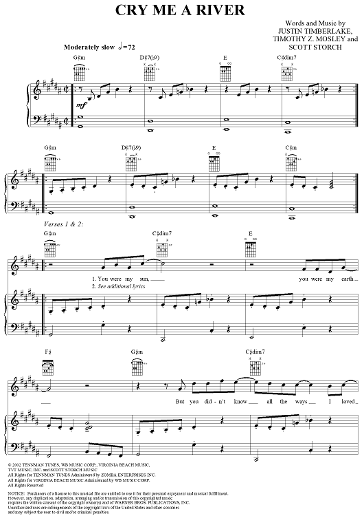 Digital Sheet Music for Cry Me a River by Timothy Mosley, Scott Storch, Justin Timberlake scored for Piano/Vocal/Chords; id:294589