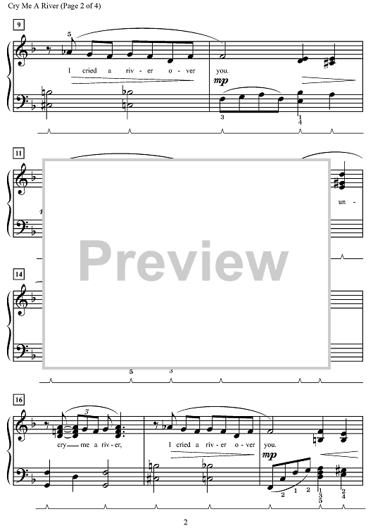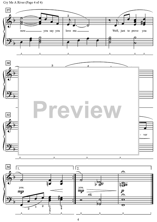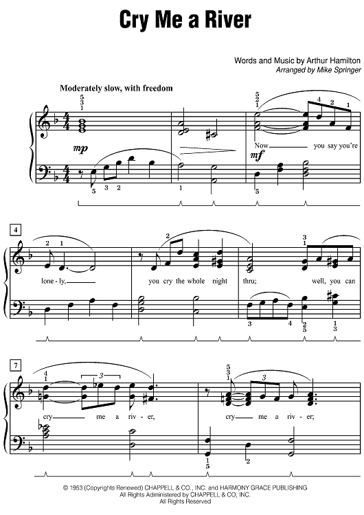 Digital Sheet Music for Cry Me a River by Arthur Hamilton, Mike Springer scored for Easy Piano; id:497915