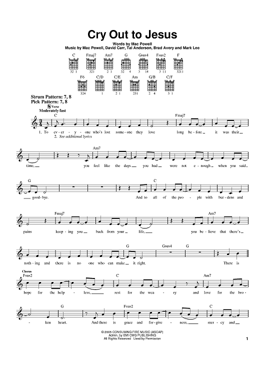 Digital Sheet Music for Cry Out To Jesus by Third Day, Mac Powell, Mark David Lee, Tai Anderson, Brad Avery, David Carr scored for Easy Guitar; id:398250
