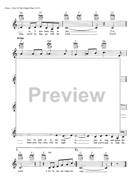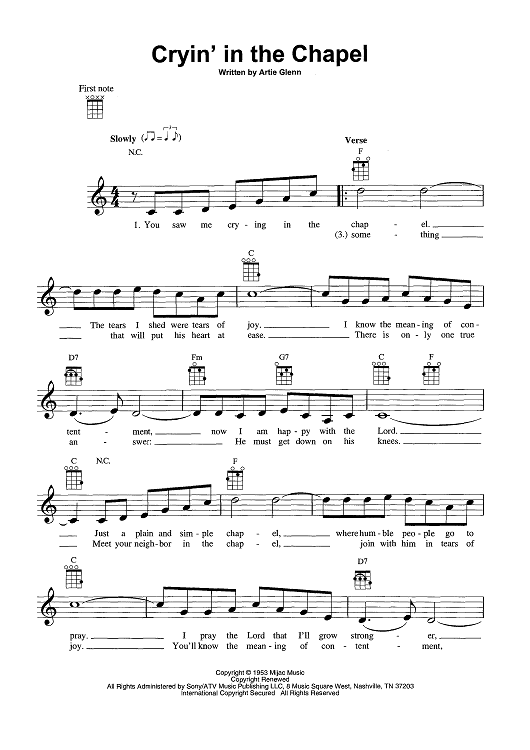 Digital Sheet Music for Cryin' in the Chapel by Artie Glenn scored for Ukulele/Vocal; id:448974