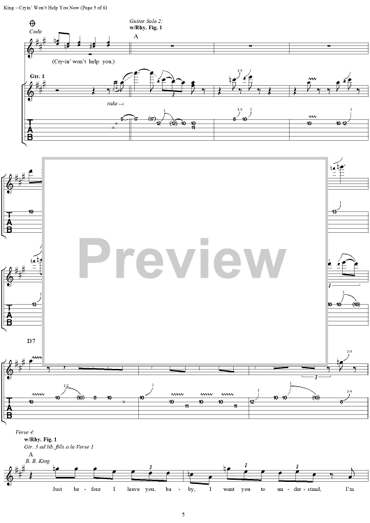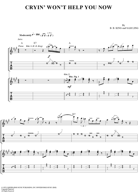 "Cryin' Won't Help You Now" Sheet Music by B.B. King