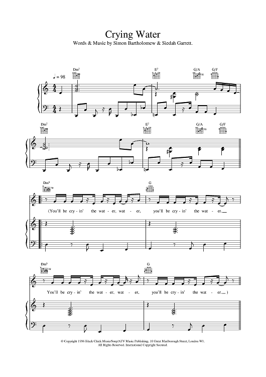 Digital Sheet Music for Crying Water by Brand New Heavies scored for Piano/Vocal/Chords; id:376493