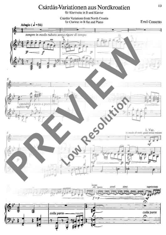 Digital Sheet Music for Csárdás-Compositions by Emil Cossetto scored for Clarinet And Piano; id:475909