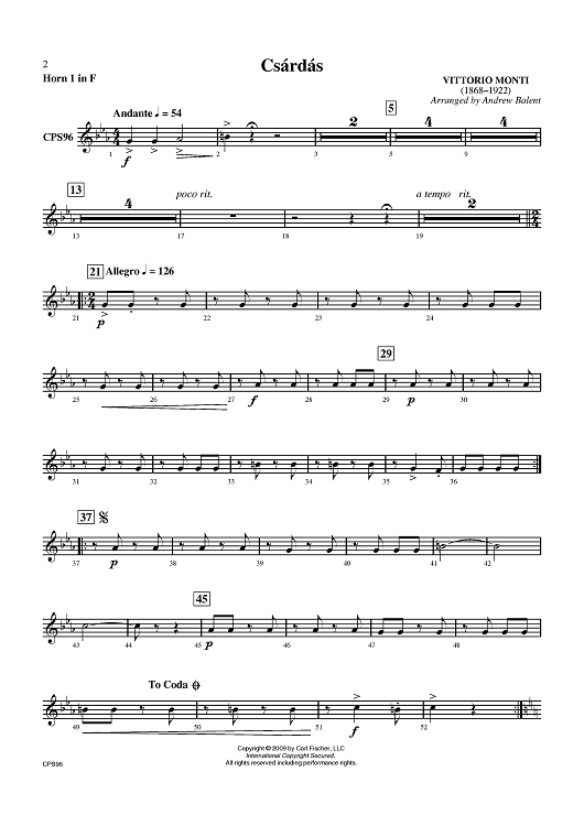 Digital Sheet Music for Csardas - Horn 1 in F by Vittorio Monti, Andrew Balent scored for Concert Band; id:405862