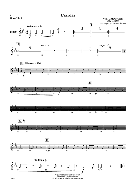 Digital Sheet Music for Csardas - Horn 2 in F by Vittorio Monti, Andrew Balent scored for Concert Band; id:405863