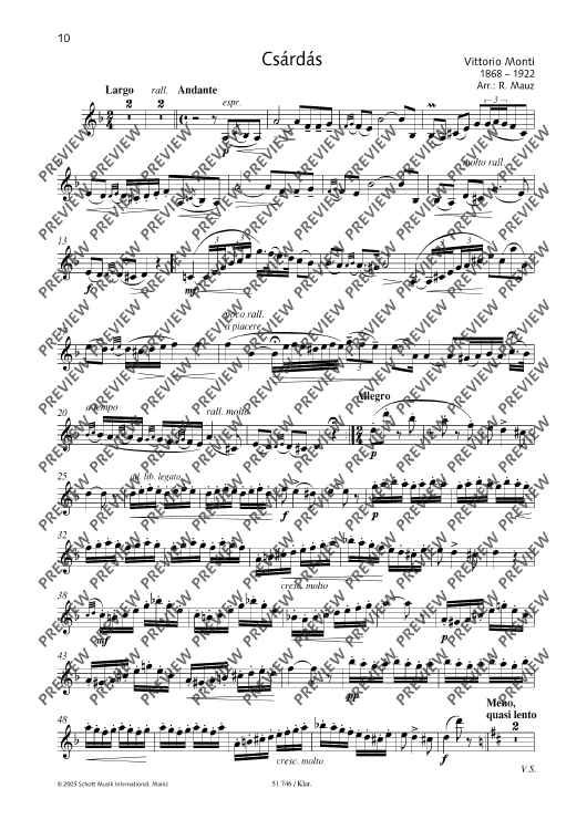 Digital Sheet Music for Csardas by Vittorio Monti, Rudolf Mauz scored for Clarinet In Bb And Piano; id:497850