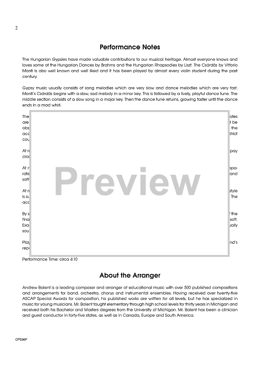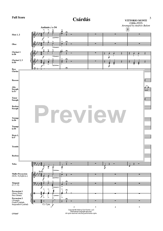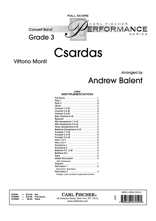 Digital Sheet Music for Csardas - Score by Vittorio Monti, Andrew Balent scored for Concert Band; id:405846