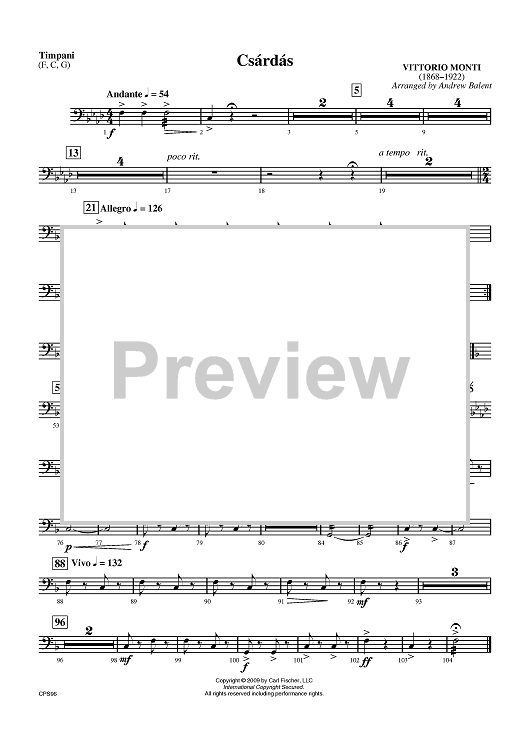 Digital Sheet Music for Csardas - Timpani by Vittorio Monti, Andrew Balent scored for Concert Band; id:405870