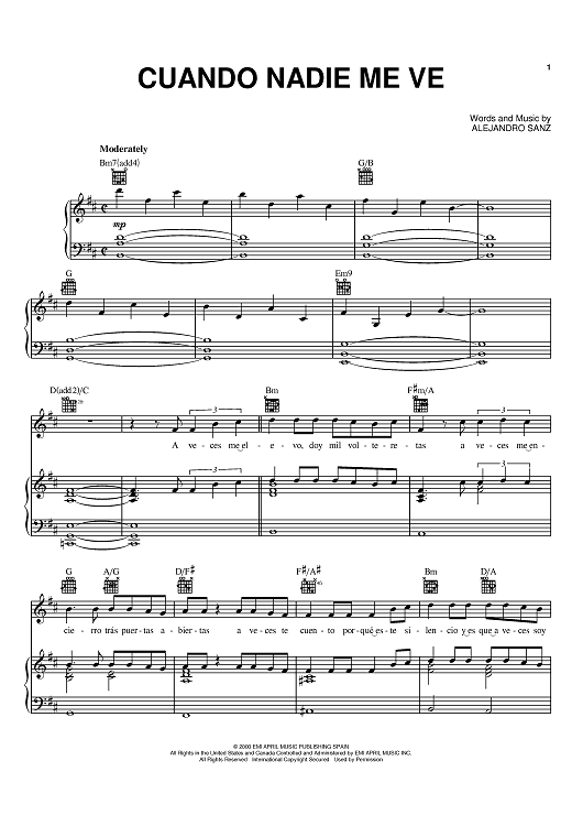 "Cuando Nadie Me Ve" Sheet Music by Alejandro Sanz