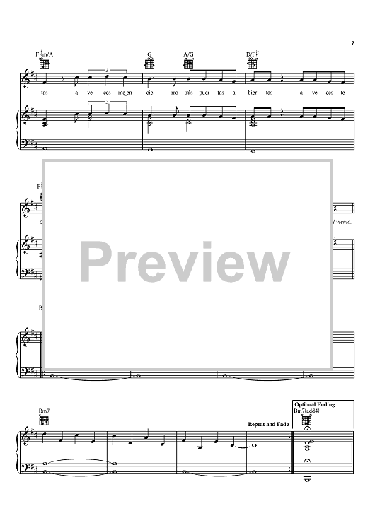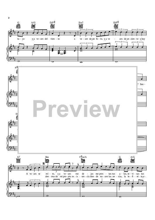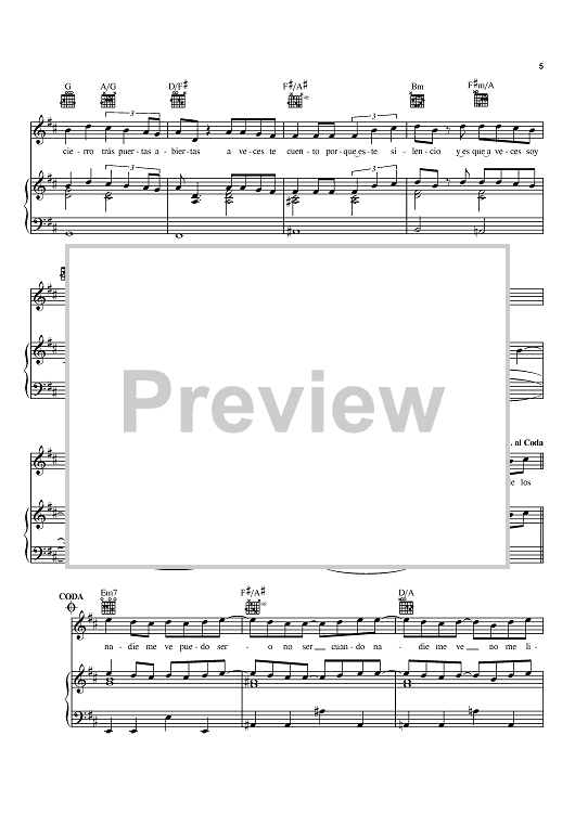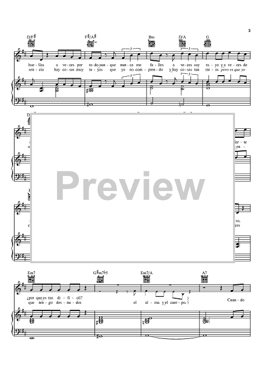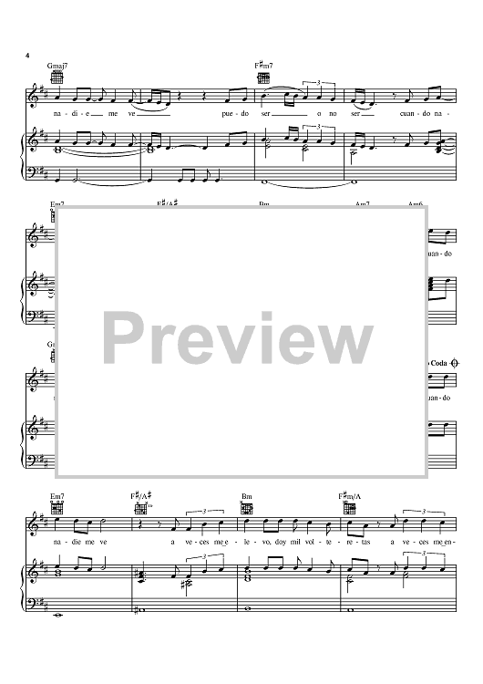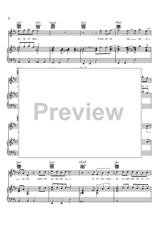 Digital Sheet Music for Cuando Nadie Me Ve by Alejandro Sanz scored for Piano/Vocal/Chords; id:371148