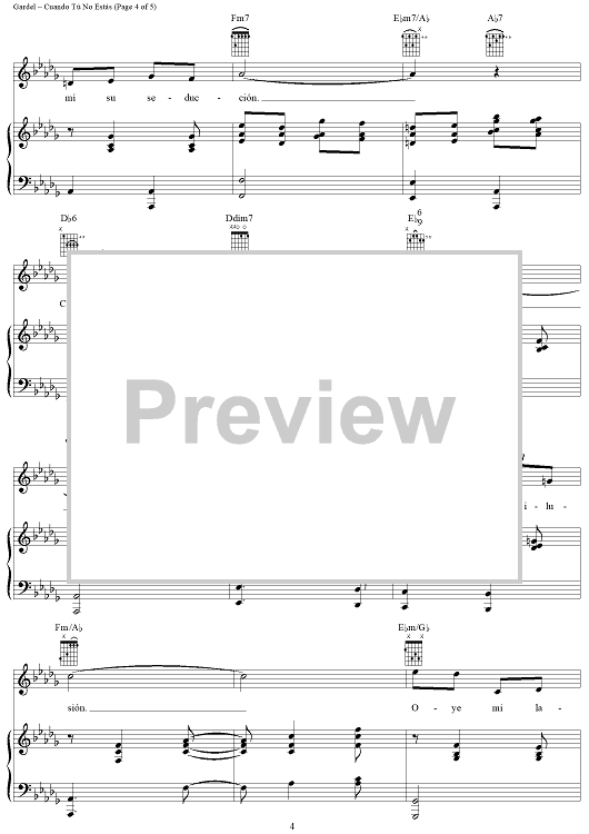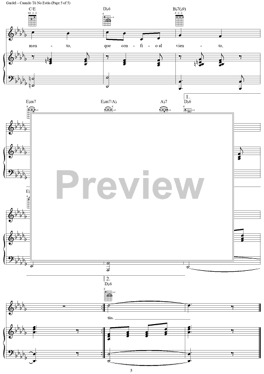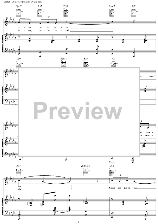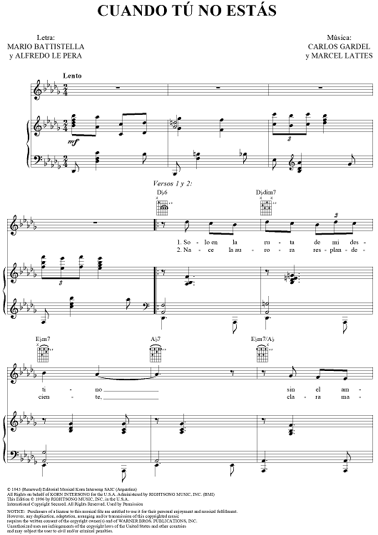 Digital Sheet Music for Cuando Tú No Estás by Carlos Gardel, Alfredo Le Pera scored for Piano/Vocal/Chords; id:311960