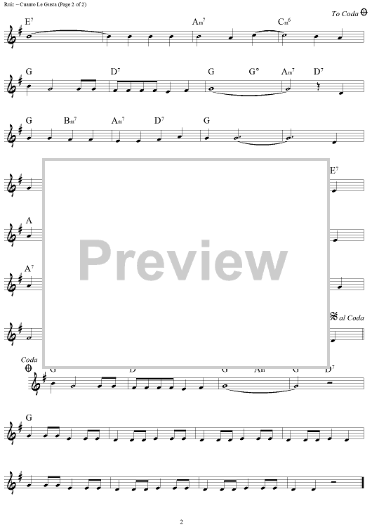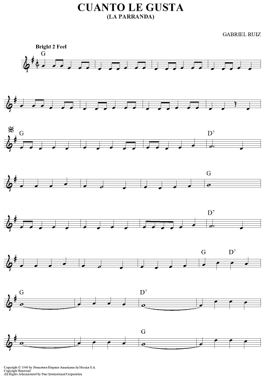 Digital Sheet Music for Cuanto Le Gusta (La Parranda) by Gabriel Ruiz scored for Lead Sheet; id:446558