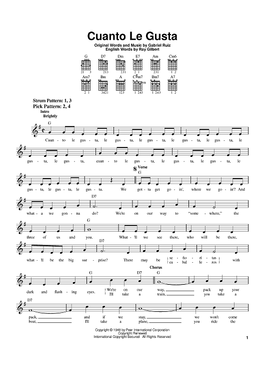 Digital Sheet Music for Cuanto Le Gusta by Carman, The Andrews Sisters, Ray Gilbert scored for Easy Guitar; id:369782