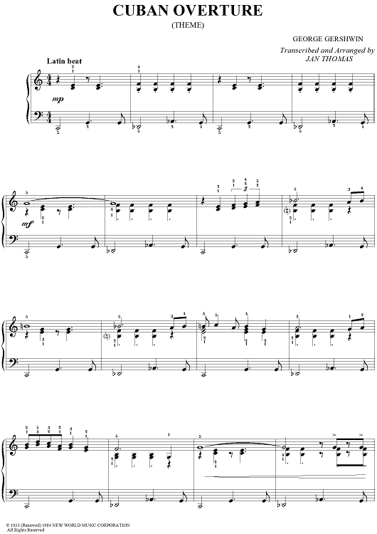Digital Sheet Music for Cuban Overture (Theme) by George Gershwin, Jan Thomas scored for Piano Solo; id:418766