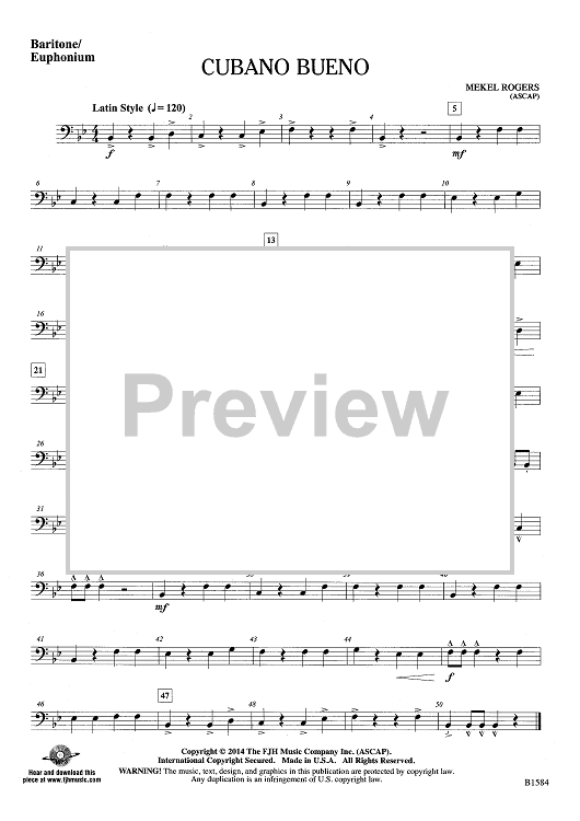 Digital Sheet Music for Cubano Bueno - Baritone/Euphonium by Mekel Rogers scored for Concert Band; id:445802