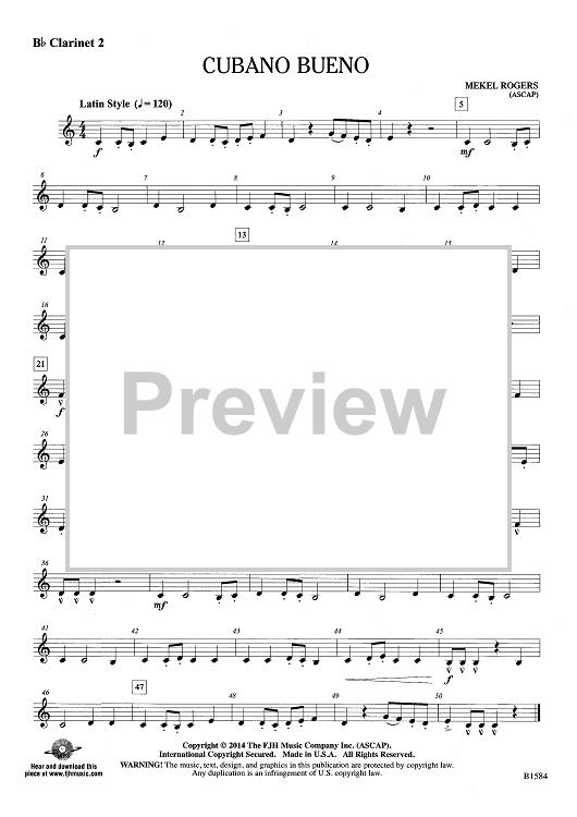"Cubano Bueno - Bb Clarinet 2" Sheet Music by Mekel Rogers