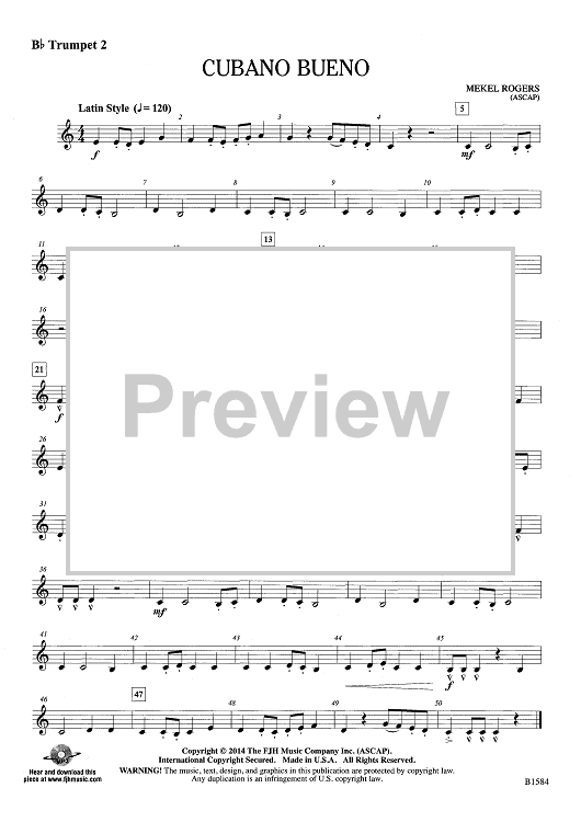 Digital Sheet Music for Cubano Bueno - Bb Trumpet 2 by Mekel Rogers scored for Concert Band; id:445799