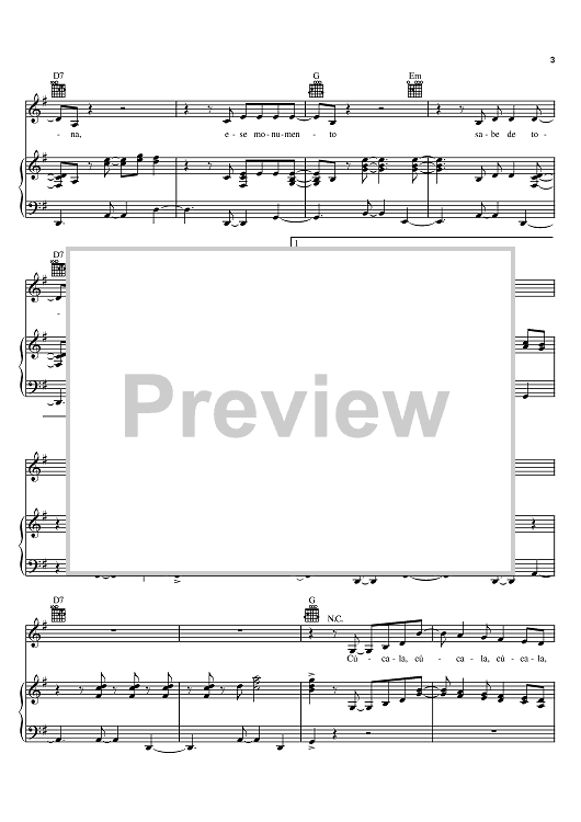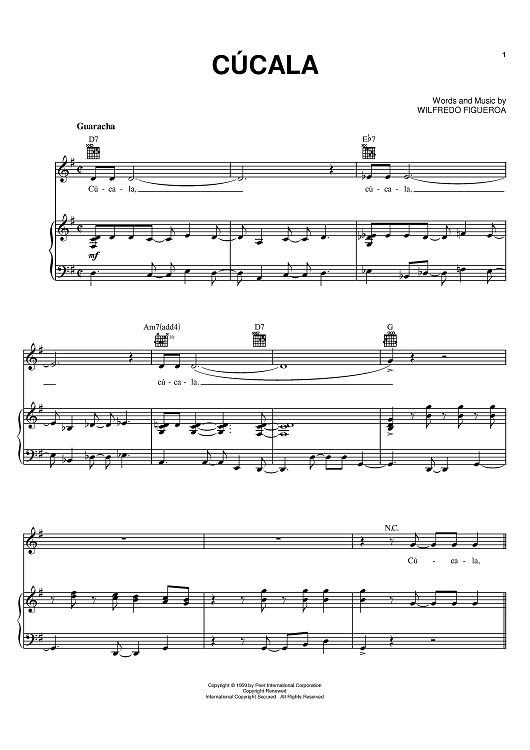 "Cucala" Sheet Music by Celia Cruz