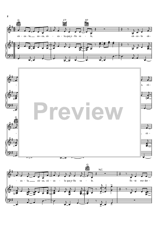 Digital Sheet Music for Cucala by Celia Cruz, Wilfredo Figueroa scored for Piano/Vocal/Chords; id:386300