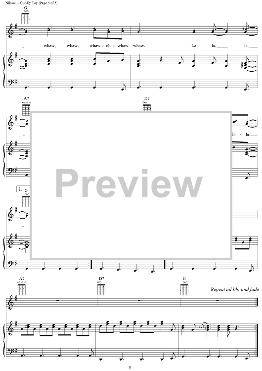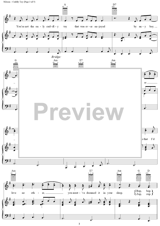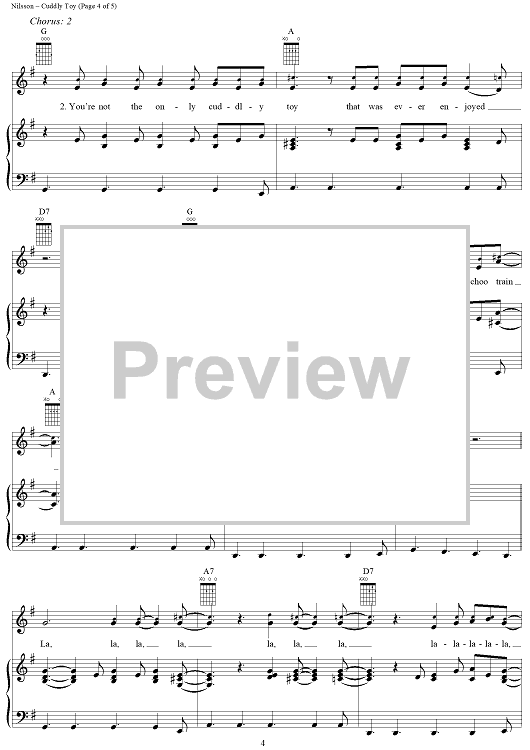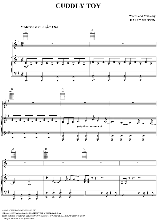 Digital Sheet Music for Cuddly Toy by Harry Nilsson, The Monkees, Nilsson scored for Piano/Vocal/Chords; id:253155