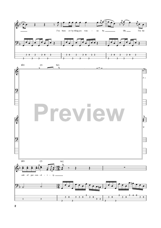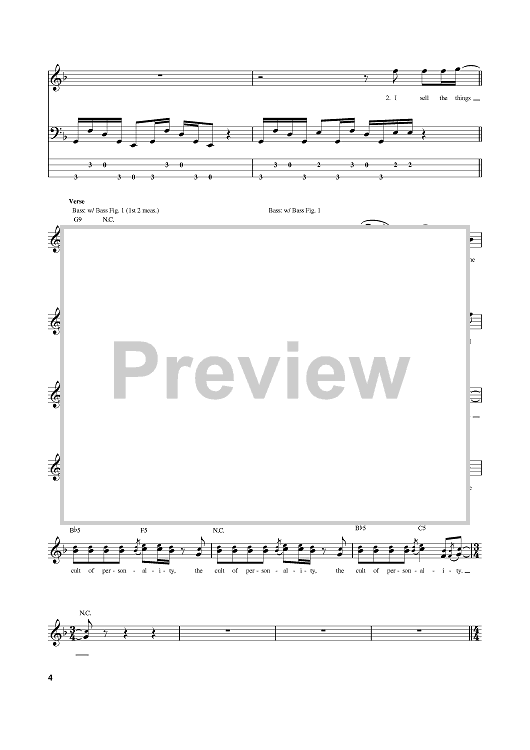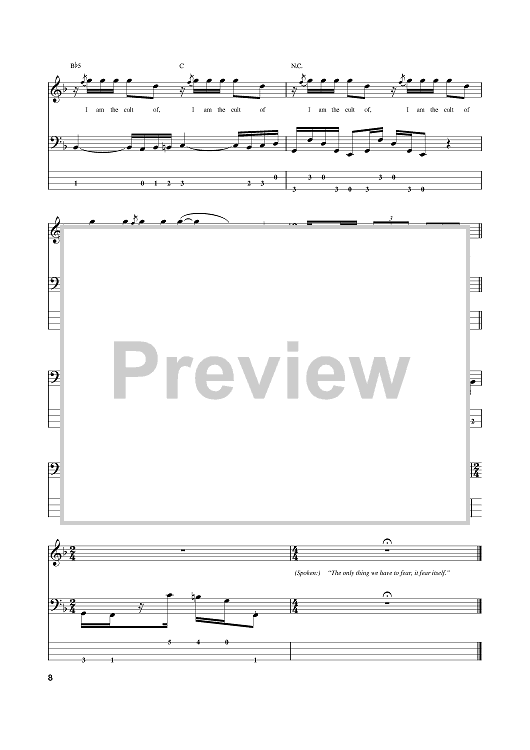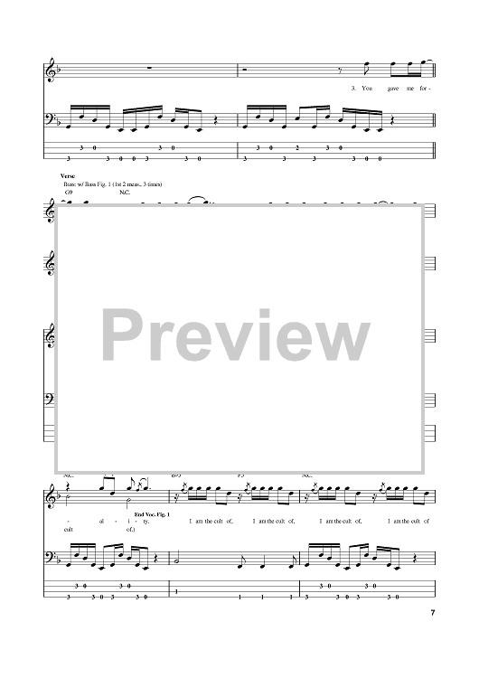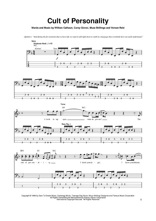 Digital Sheet Music for Cult Of Personality by Vernon Reid, Will Calhoun, Corey Glover, Living Colour, Manuel Skillings scored for Bass Tab; id:382343