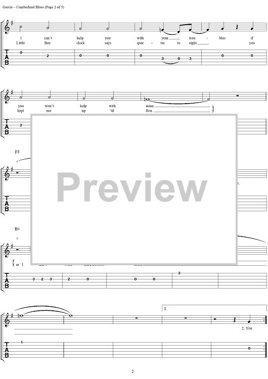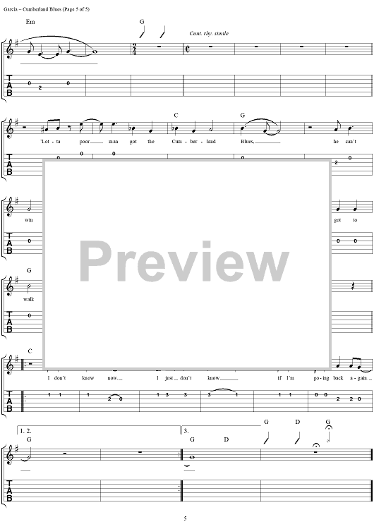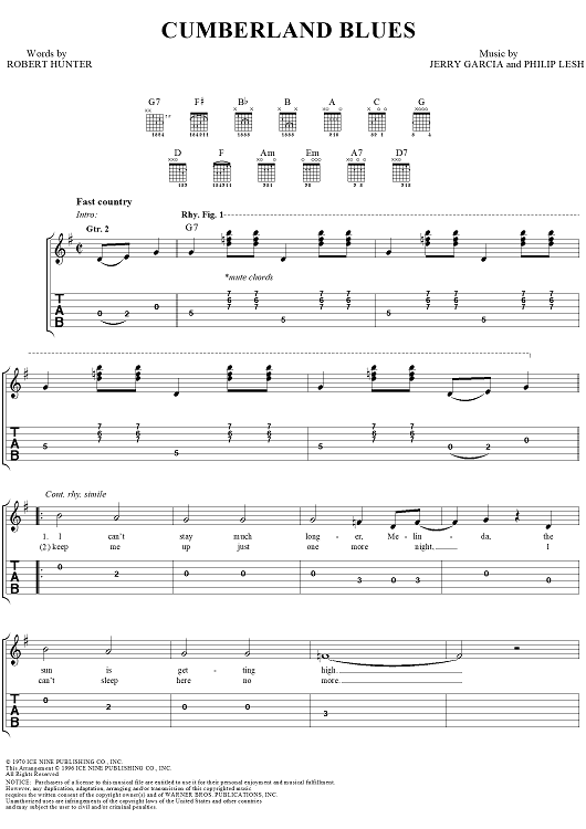 "Cumberland Blues" Sheet Music by Grateful Dead