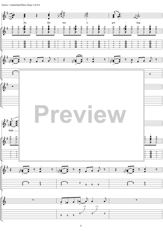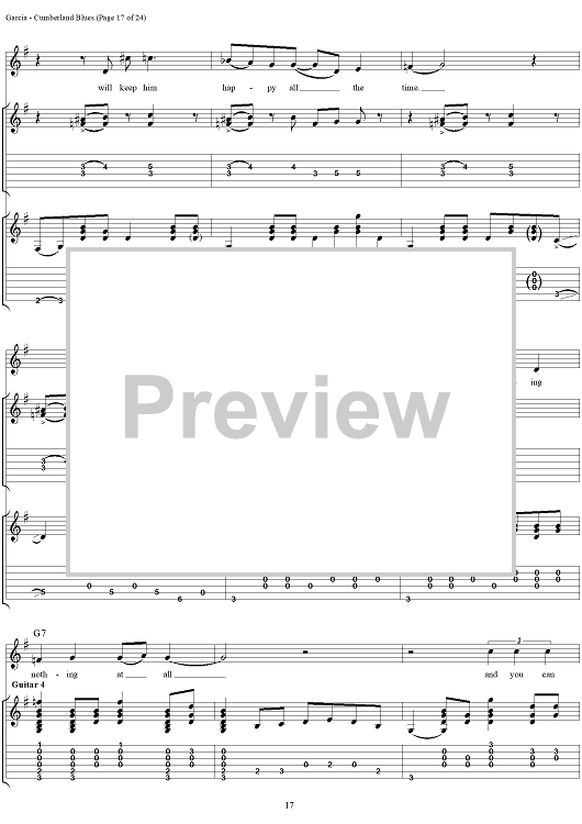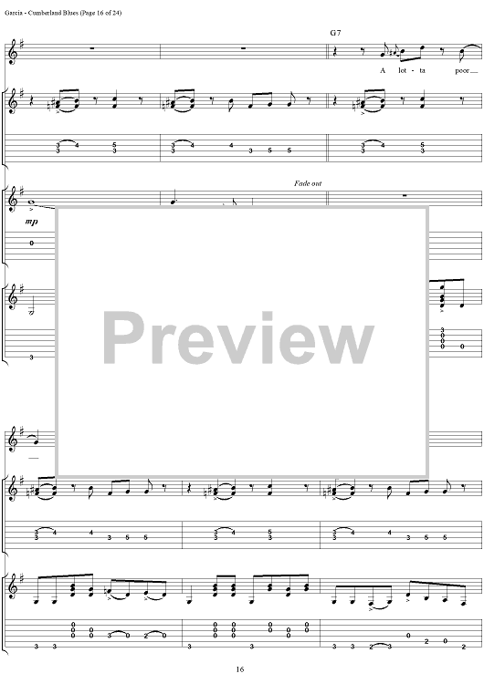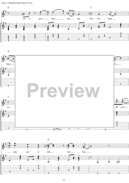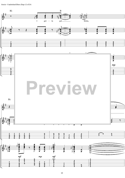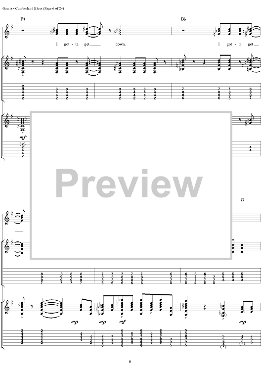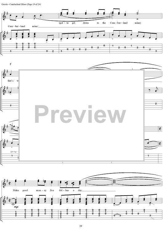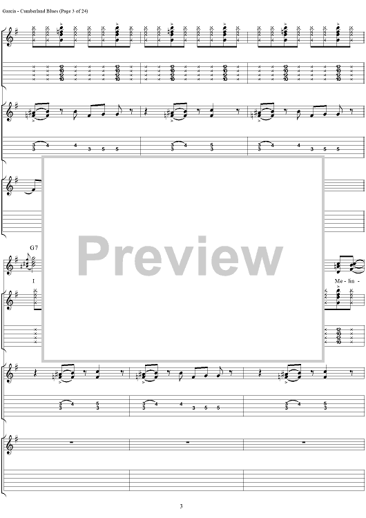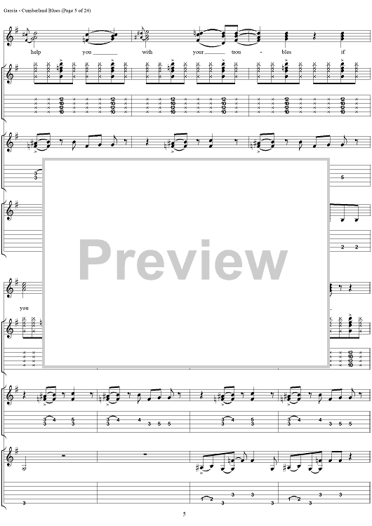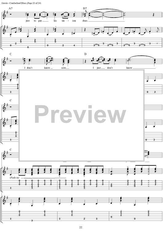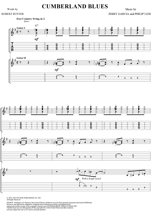 Digital Sheet Music for Cumberland Blues by Jerry Garcia, Robert Hunter, Grateful Dead scored for Guitar Tab/Vocal; id:268761