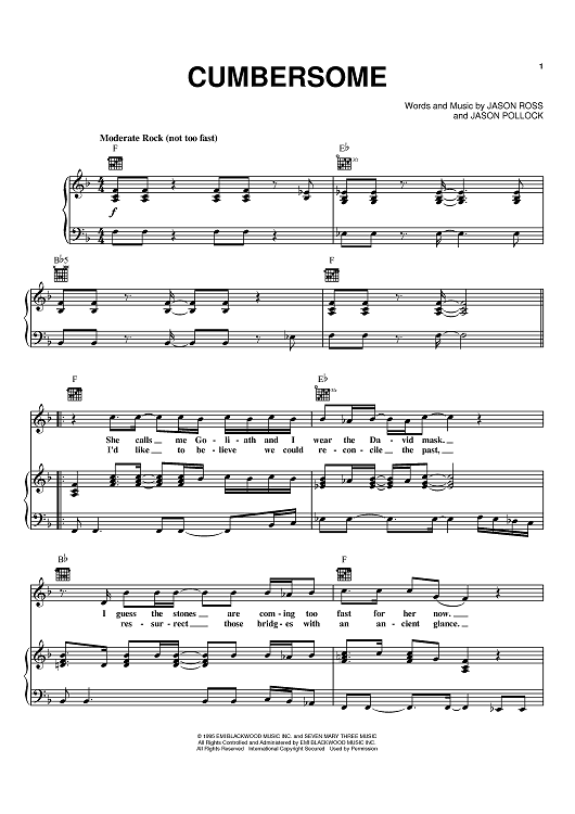 Digital Sheet Music for Cumbersome by Jason Pollock, Jason Ross, Seven Mary Three scored for Piano/Vocal/Chords; id:368323