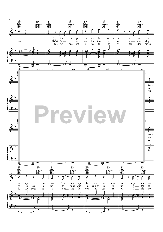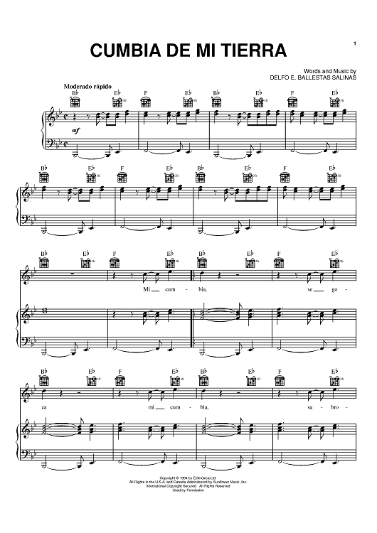 Digital Sheet Music for Cumbia De Mi Tierra by Delfo E. Ballestas Salinas scored for Piano/Vocal/Chords; id:370555