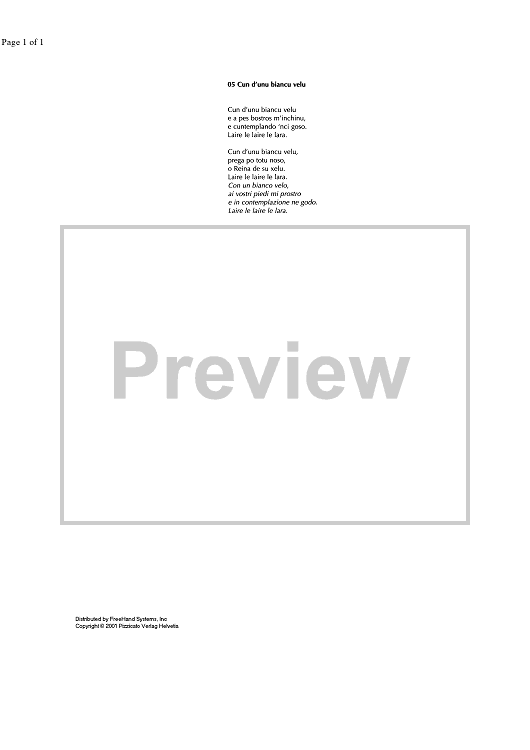 "Cun d'unu biancu velu - Lyrics" Sheet Music by Antonio Sanna