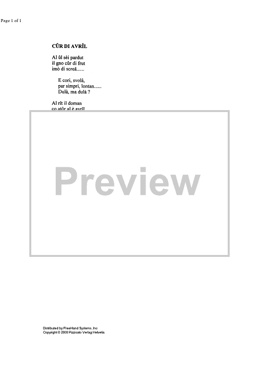 "Cûr di avrîl - Lyrics" Sheet Music by Davide Liani
