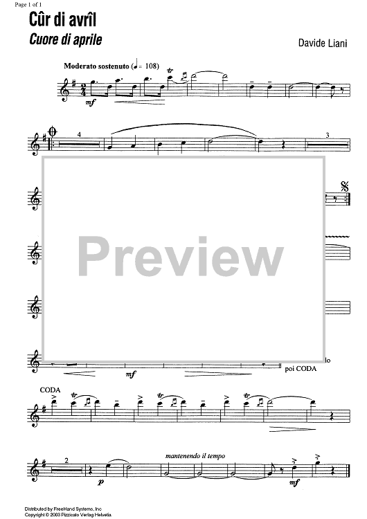"Cûr di avrîl" Sheet Music by Davide Liani