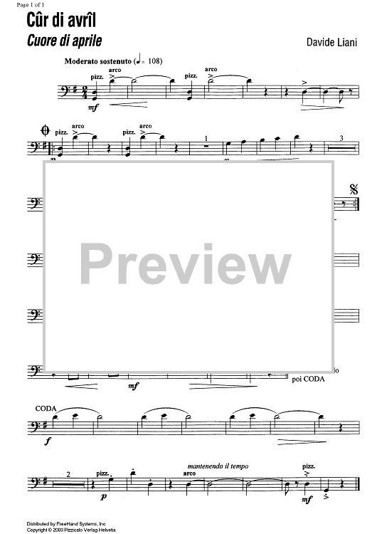 "Cûr di avrîl" Sheet Music by Davide Liani