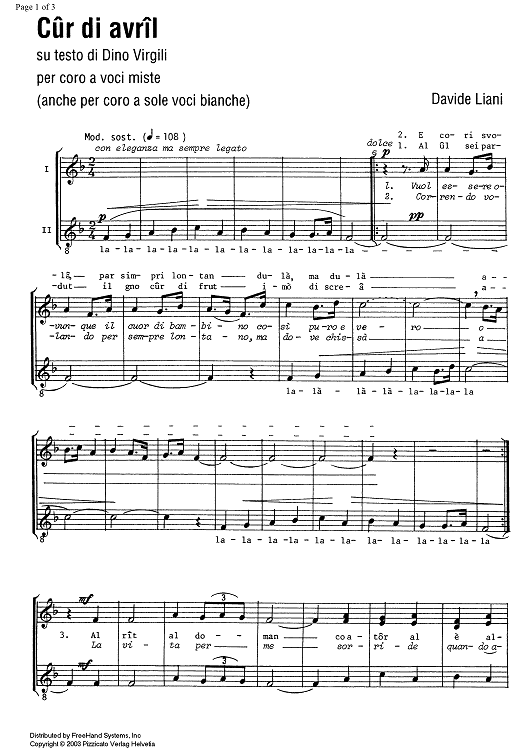 "Cûr do avrîl" Sheet Music by Davide Liani