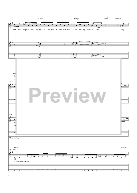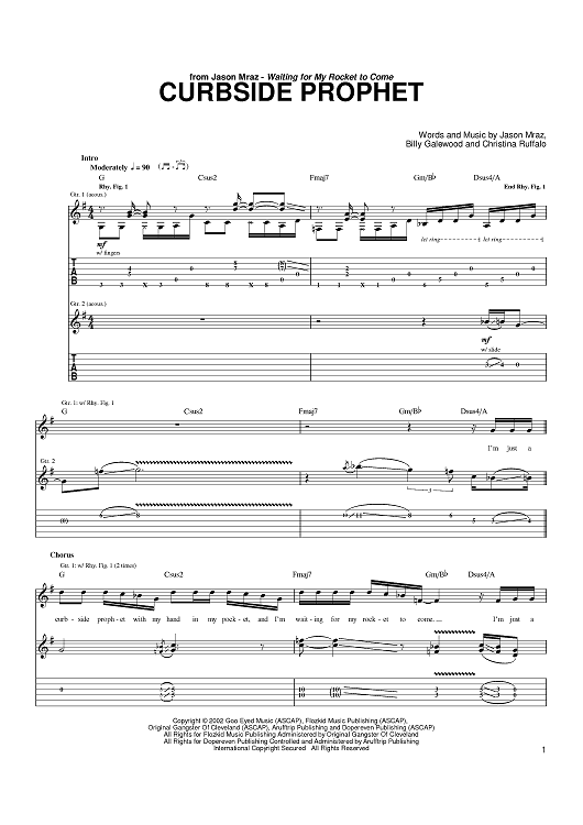 Digital Sheet Music for Curbside Prophet by Billy Galewood, Christina Ruffalo, Jason Mraz scored for Guitar Tab; id:384682
