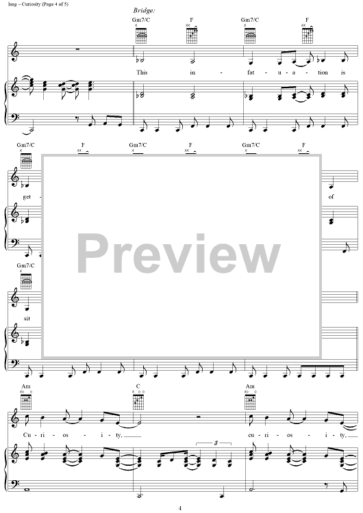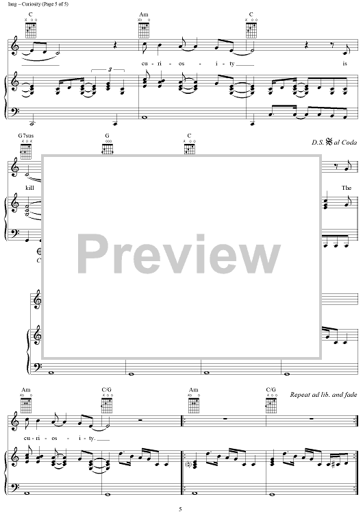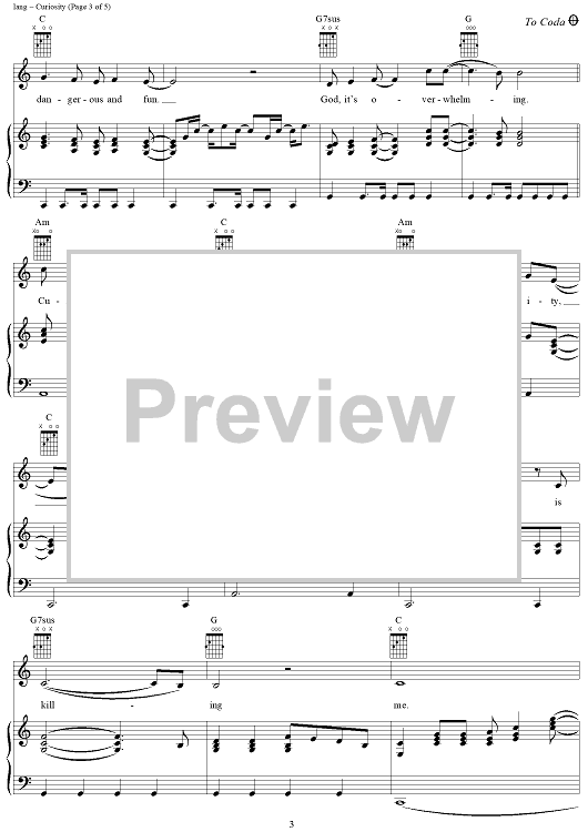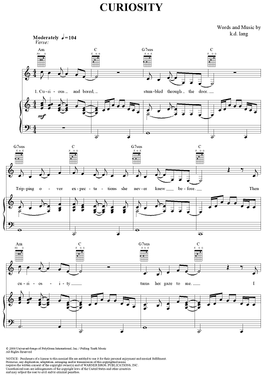 Digital Sheet Music for Curiosity by K.D. Lang scored for Piano/Vocal/Chords; id:286195