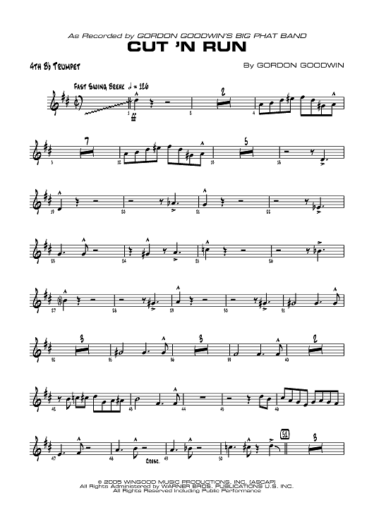 "Cut 'n Run - B-flat Trumpet 4" Sheet Music by Gordon Goodwin's Big Phat Band
