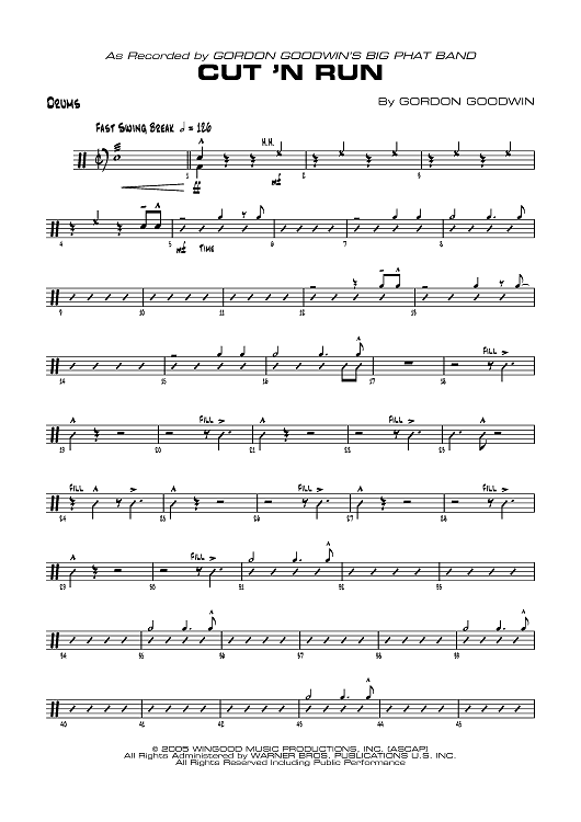 "Cut 'n Run - Drums" Sheet Music by Gordon Goodwin's Big Phat Band