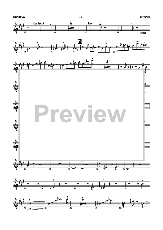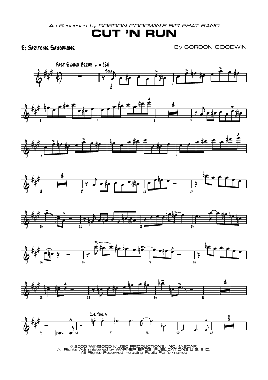 Digital Sheet Music for Cut 'n Run - E-flat Baritone Saxophone by Gordon Goodwin, Gordon Goodwin's Big Phat Band scored for Jazz Ensemble; id:356080