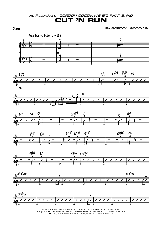 "Cut 'n Run - Piano" Sheet Music by Gordon Goodwin's Big Phat Band