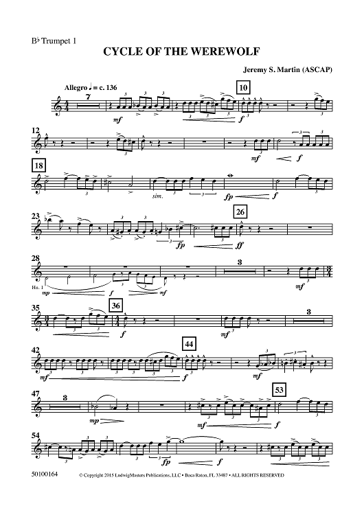 "Cycle of the Werewolf - Bb Trumpet 1" Sheet Music by Jeremy S. Martin