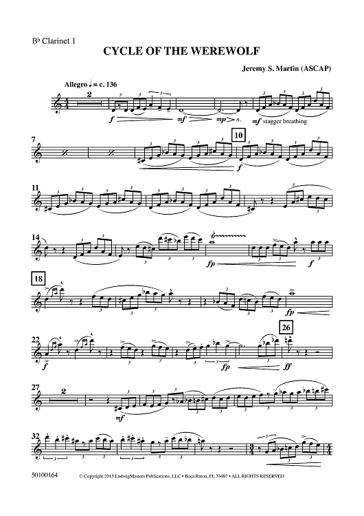 "Cycle of the Werewolf - Clarinet 1 in Bb" Sheet Music by Jeremy S. Martin