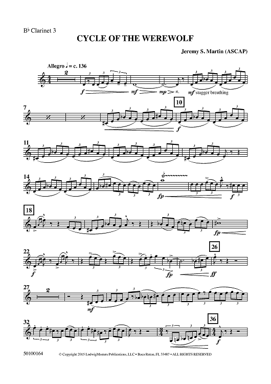 Digital Sheet Music for Cycle of the Werewolf - Clarinet 3 in Bb by Jeremy S. Martin scored for Concert Band; id:459343