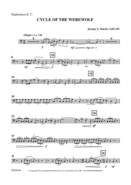 Digital Sheet Music for Cycle of the Werewolf - Euphonium BC by Jeremy S. Martin scored for Concert Band; id:459360
