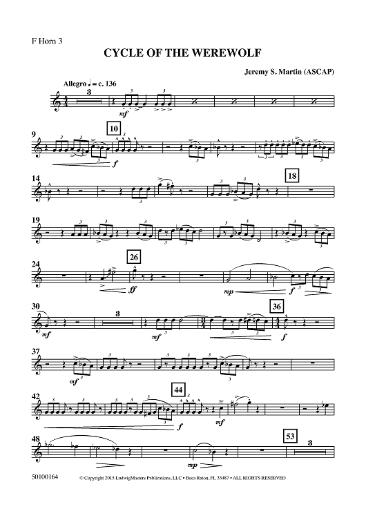 Digital Sheet Music for Cycle of the Werewolf - Horn 3 in F by Jeremy S. Martin scored for Concert Band; id:459355
