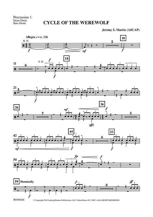 Digital Sheet Music for Cycle of the Werewolf - Percussion 1 by Jeremy S. Martin scored for Concert Band; id:459367
