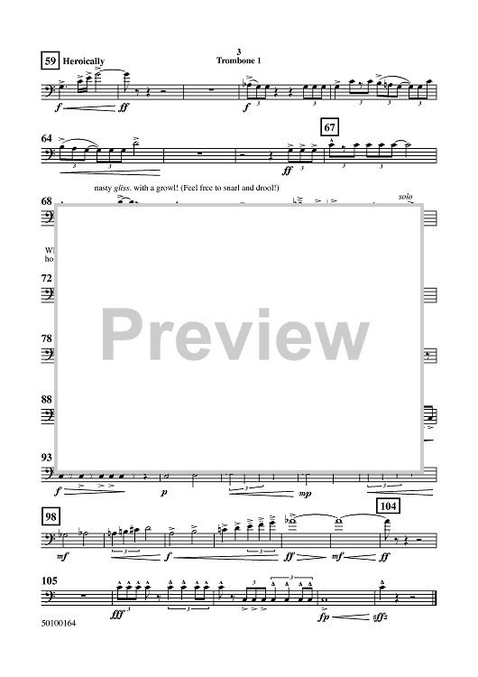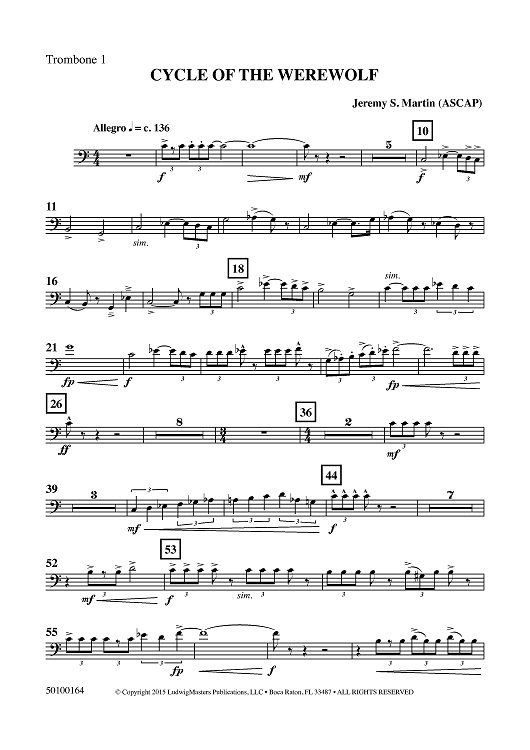 Digital Sheet Music for Cycle of the Werewolf - Trombone 1 by Jeremy S. Martin scored for Concert Band; id:459357